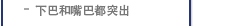 嘴唇下边和下巴间没有凹进去的地方,反而显平甚至突出 (6分)
