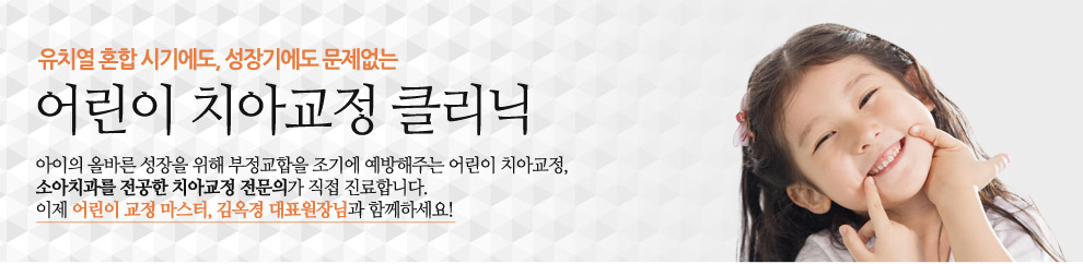“김옥경 원장님! 우리 아이에게 건강한 미소를 찾아주세요!” 오리건치과의 어린이치아교정은 아이들의 성장 과정에서 더욱 악화될 가능성이 높은 주걱턱, 돌출입 등의 부정교합을 조기에 치료해주고 있으며, 부정교합 유형별에 따른 적절한 교정 시기를 제시하여 바람직한 얼굴 골격 관계를 형성해주고, 균형 잡힌 치열과 교합을 완성해드립니다.