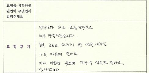 생각보다 빠른 교정기간으로 너무 만족스럽습니다