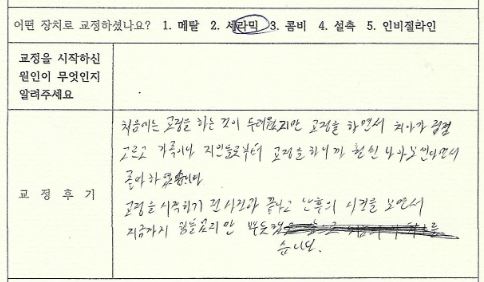 처음에는 교정을 하는 것이 두려웠지만, 교정을 하면서 치아가 점점 고르고 훨씬 나아보인다 소리들어서 좋았습니다.