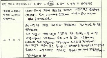 처음 상담시 말씀드렸던 걱정되는 부분 전체적으로 원하는데로 해주셔서 굉장히 만족합니다