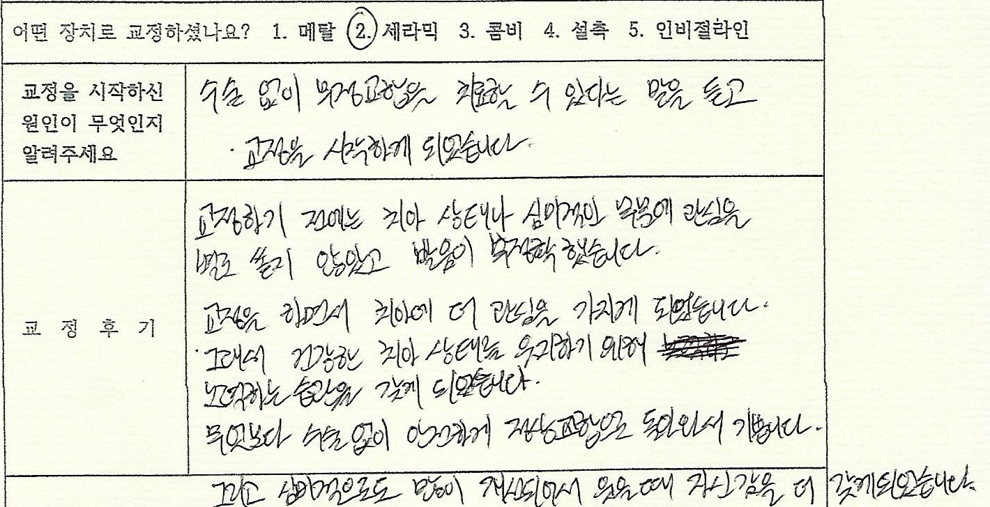 수술없이 교정으로 가능하다고 해서 시작하게 되었습니다