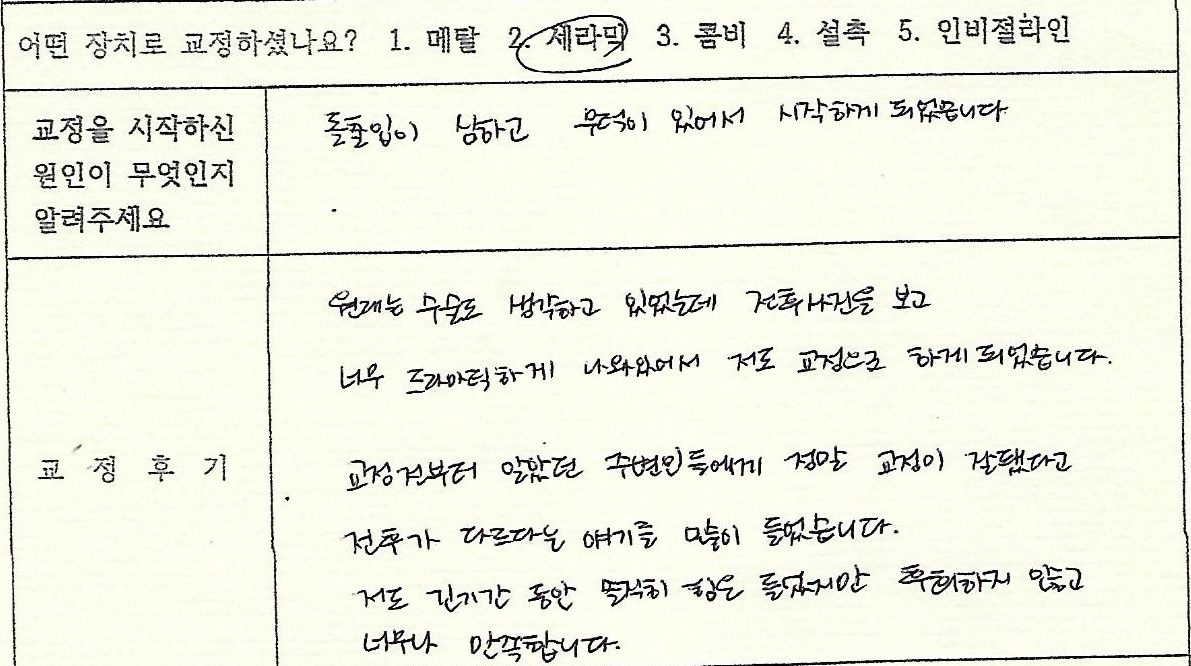 수술고려했는데, 전후사진을 보고 오리건치과에서 교정을 하게되었습니다.