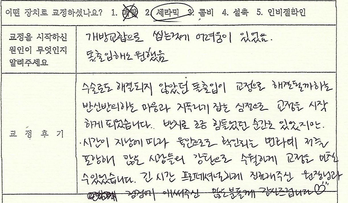 수술로도 해결되지 않던 돌출입이 교정으로 잘 마무리되었습니다.