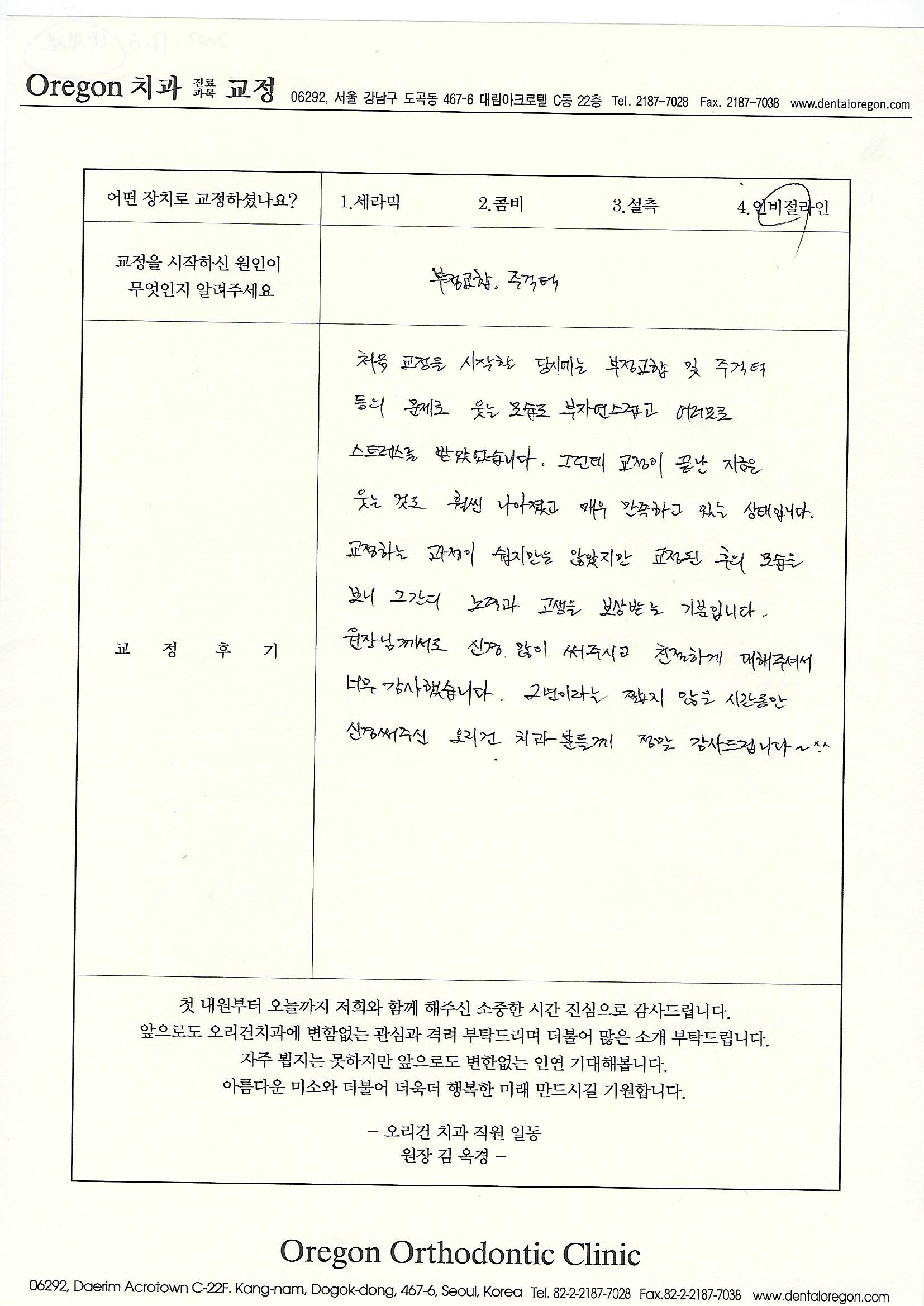 치아교정소감문