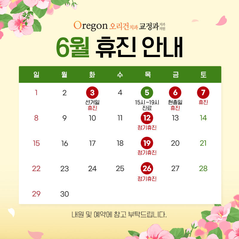| 오리건치과 :: 2025년 6월 휴진 안내 | |||||