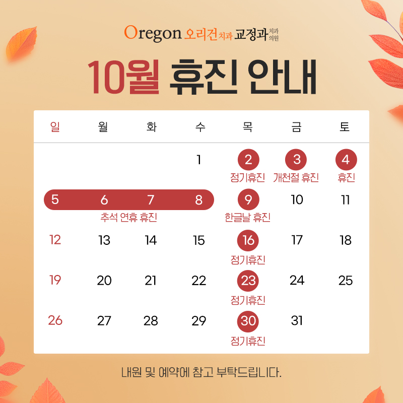 | 오리건치과 :: 2025년 10월 휴진 안내 | |||||